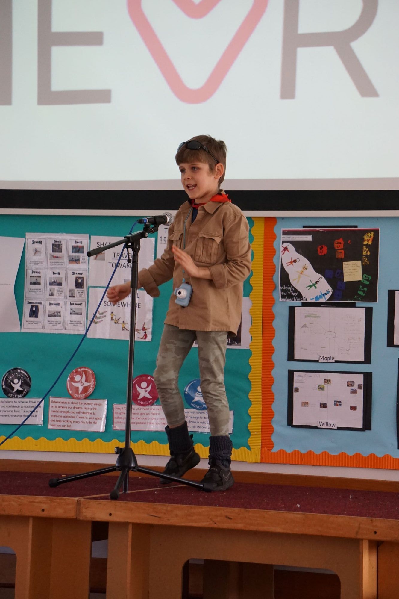 The morning got off to a great start with Ms Leslie and Ms Edwards performing poems that they learnt when they were at primary school. Then we were treated to Miss Leslie’s poetry group, fresh from their win at the recent Festival for Music, Dance and Speech, performing 2 poems about Noah’s Ark. This was followed by some wonderful Reception/Key Stage 1 whole class performances and then finally the single and small group performances. The whole school attended and everyone was spellbound, you could have heard a pin drop, that is of course except for the laughter during the various comic poem performances including notably ‘There was an old lady who swallowed a fly’.