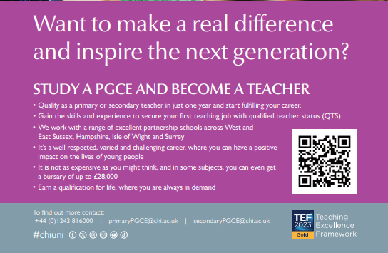 You can also email Debs Wilkinson (d.wilkinson@chi.ac.uk) to talk about the primary courses and Jeremy Smith (j.smith@chi.ac.uk) to discuss the secondary route.