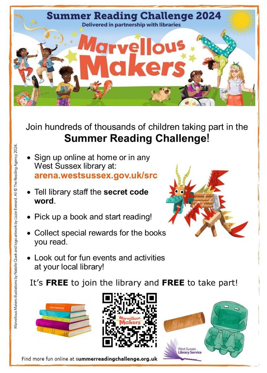 We always support the summer reading challenge because it is a great opportunity to make use of the Chichester library and to encourage children to read over the summer holidays. At Kingsham, we firmly believe that children need a rest from school and from learning so that they can give their best when they return. Maintaining some reading over the summer holidays gives children a chance to switch off with a book and ensures that they can maintain their fluency of reading over the summer break.