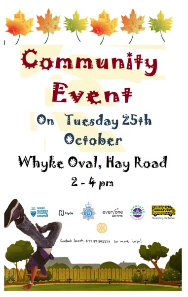 There is to be a community event on Tuesday 25th October (during half term). It is going to be hosted on the Whyke Oval from 2-4pm where there will be a range of visitors from the local community providing some fun activities for the children.