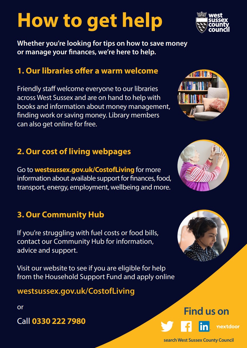 West Sussex County Council is working in partnership to support people and families who are struggling the most with the rising cost of living.