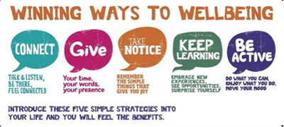 Pupils in Year 4 and 5 will have a workshop session around the 5 ways to wellbeing. Take a look about these 5 steps everyone can take to look after their own wellbeing: