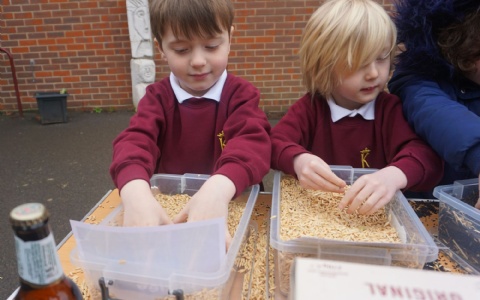 We were so lucky that he came and gave an assembly to the school and then spent time allowing children a chance to climb into his tractor and to explore the crops that he grows on his farm.