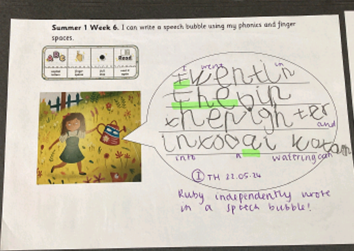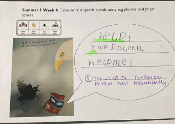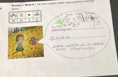 Reception children looked at the book 'Somebody Swallowed Stanley', which promoted discussions and some lovely writing about how to help our environment.