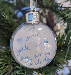 The Green Gang have been promoting lots of green messages for the Christmas season. They have used reusable baubles to send their positive messages, and they have been hung on our wonderful tree situated in the school hall.