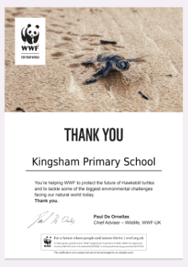 Through your kind donations we raised a grand total of £182.59, which has been shared between adopting a turtle through the WWF and also going to the Just One Tree organisation in support of their kelp regeneration project.