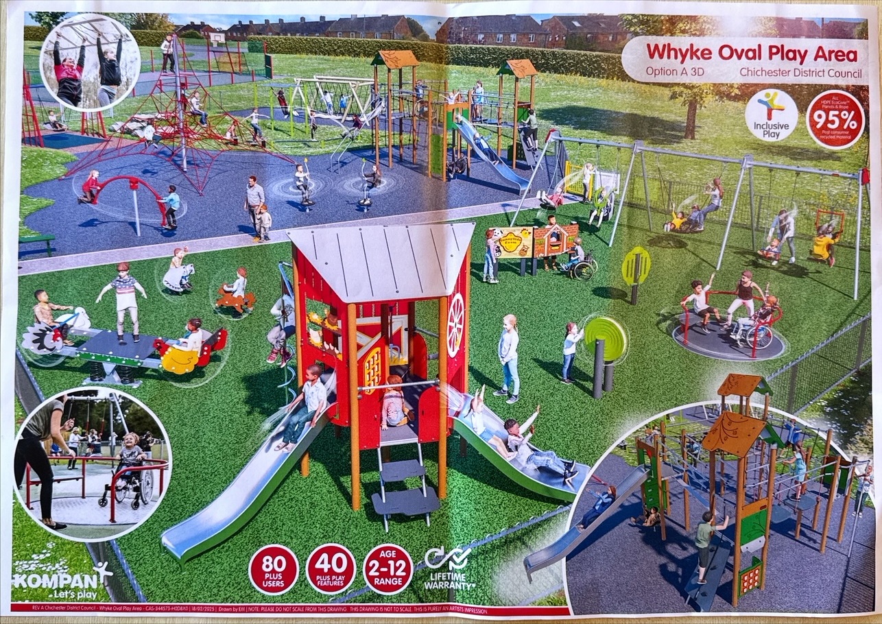 As you can see from the picture of the plan, Whyke Oval will be getting some new play equipment - enough for 80 children!