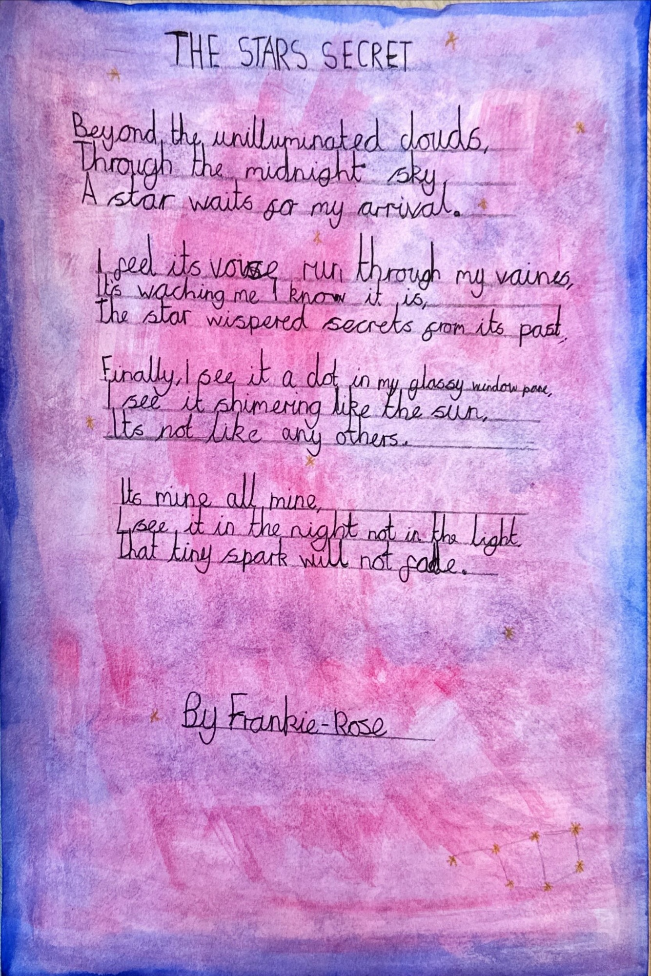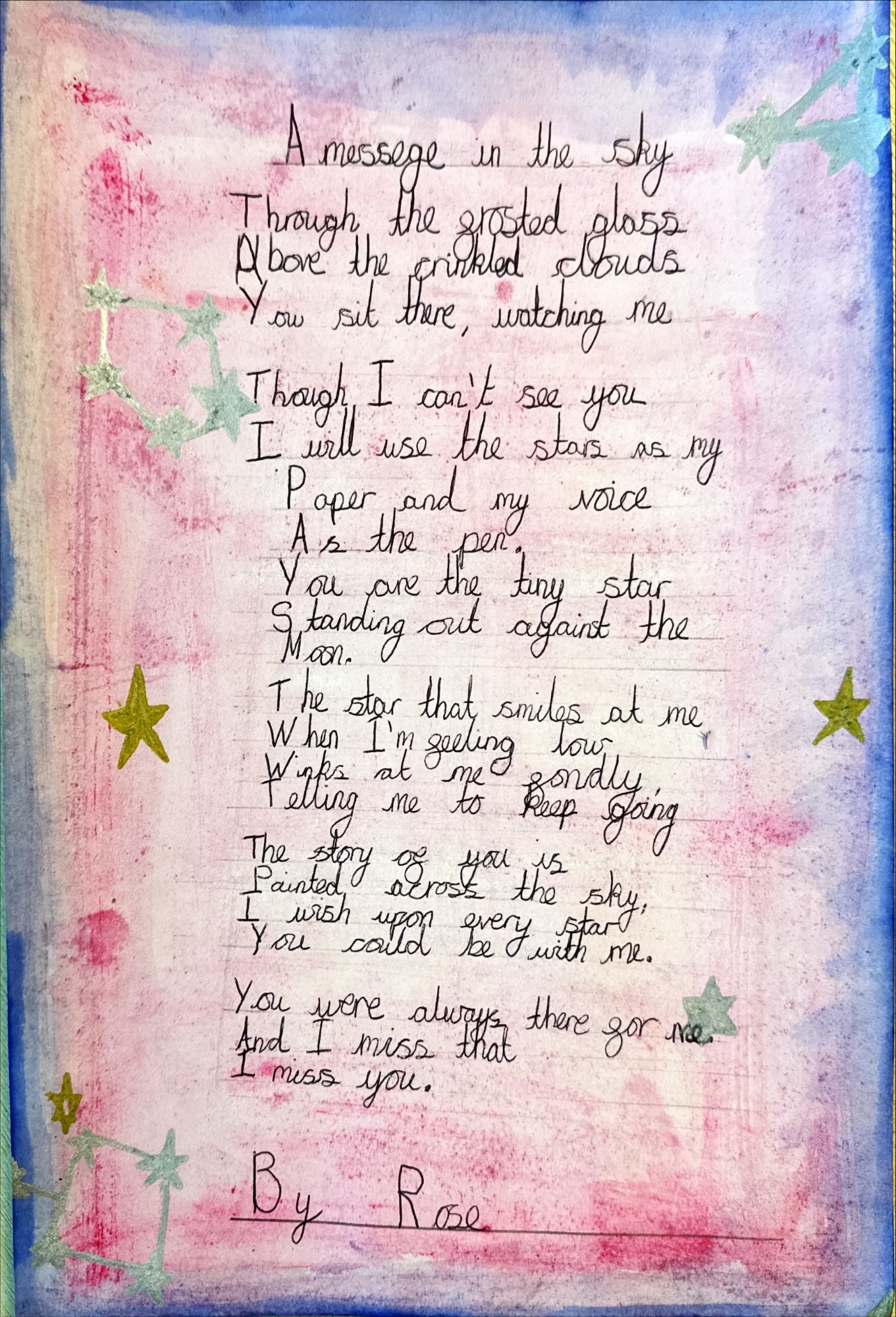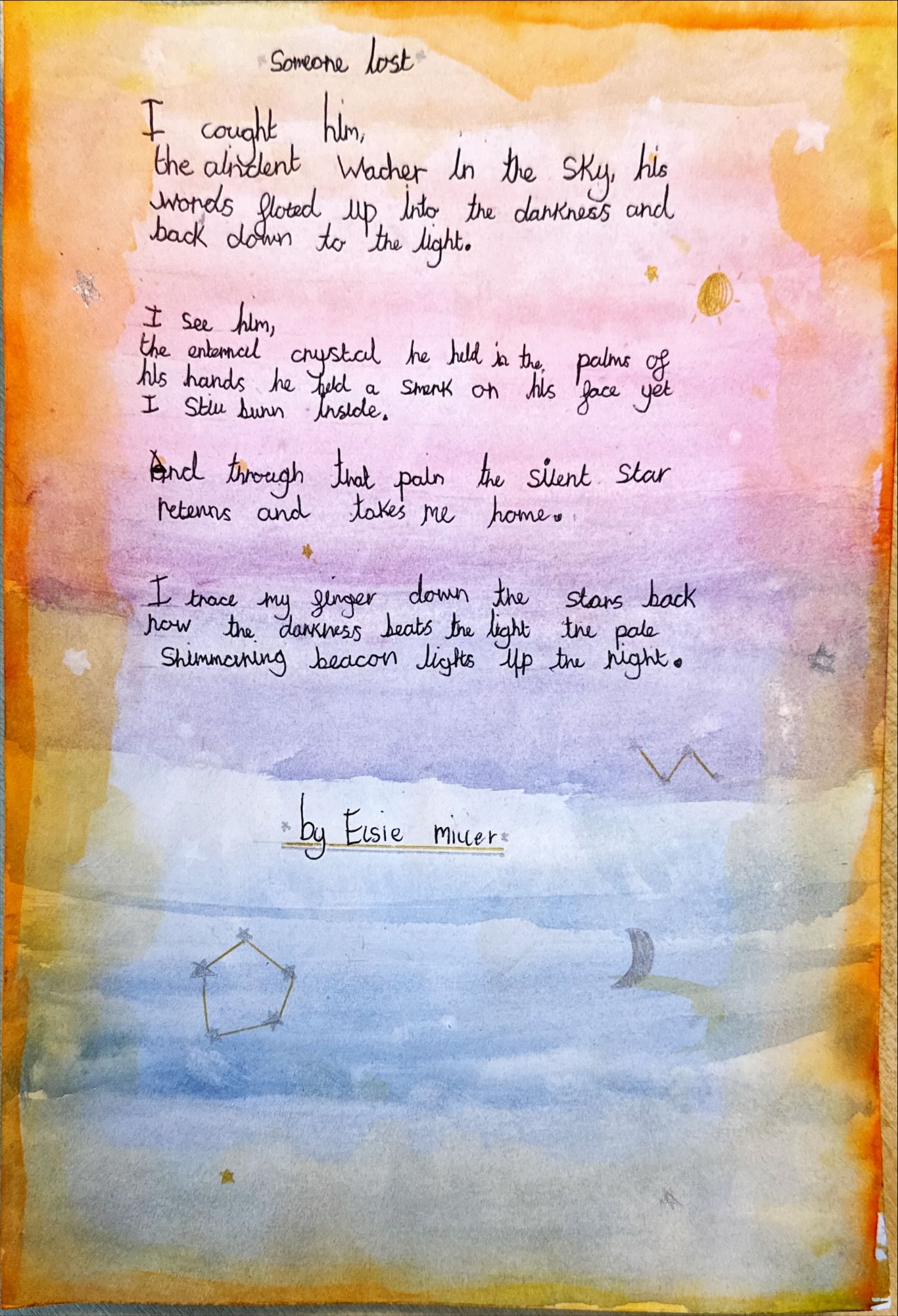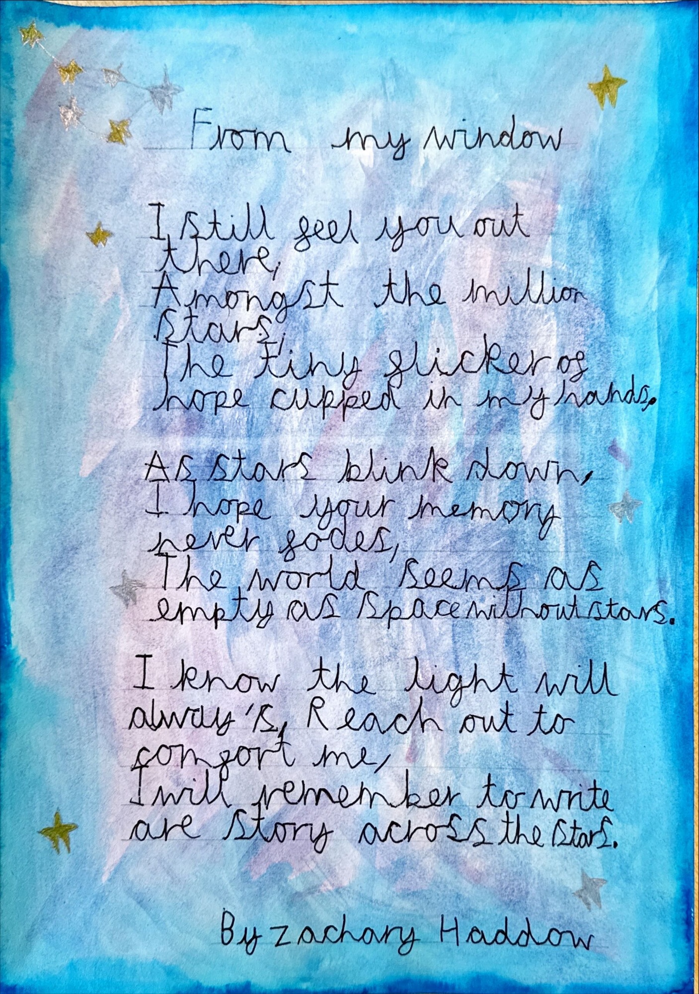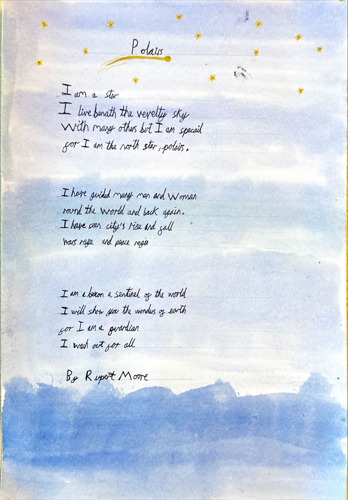 I was delighted to be shown some really excellent poetry before half term. Year 5 and 6 have been reading 'The Star Outside My Window' which inspired these poems. The imagery and description is fantastic which is also matched by the way they have been presented....