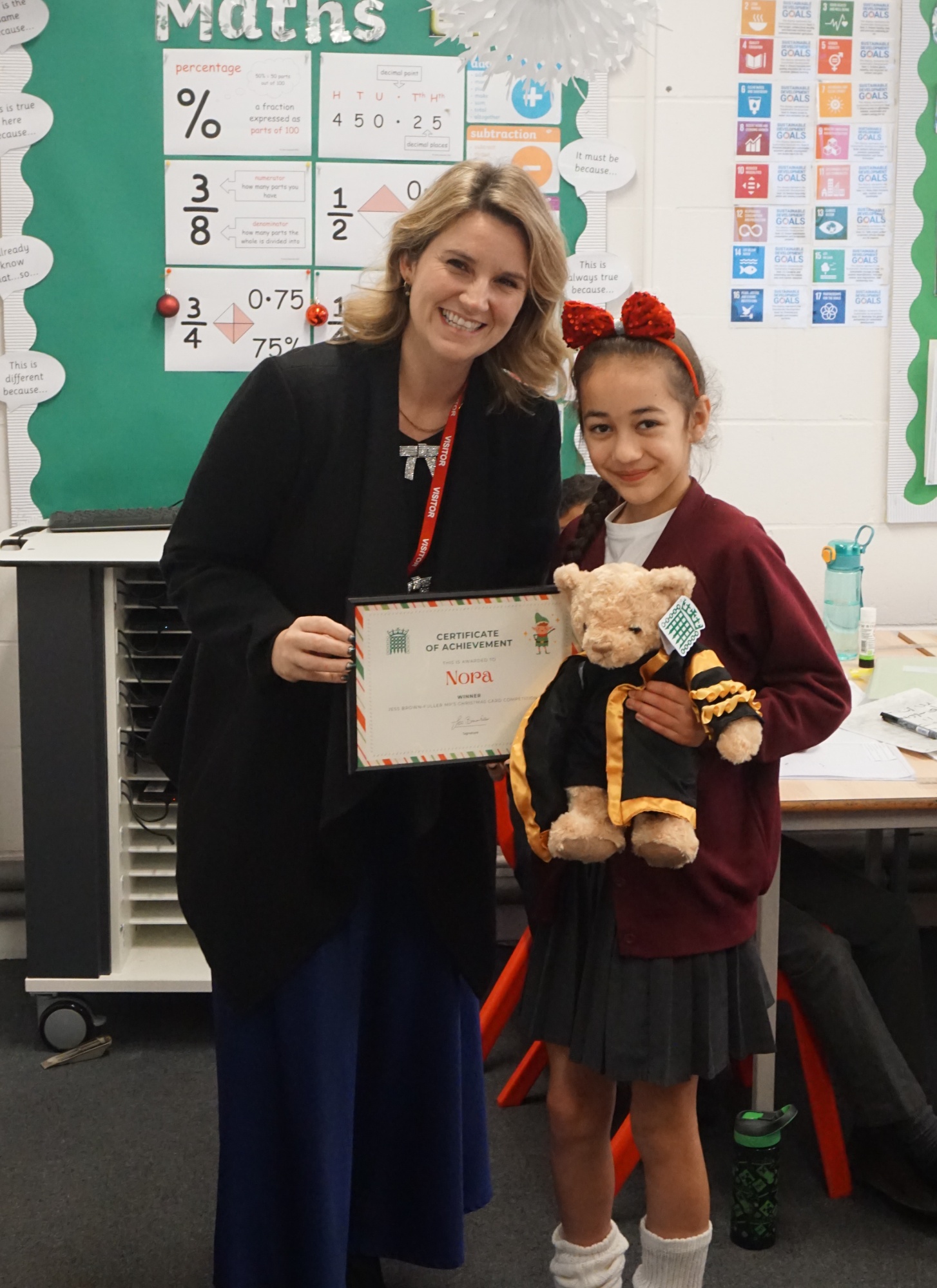 Well done to Anna and Nora who came first and second in Jess Brown-Fuller’s Christmas card competition. Jess came in and awarded Nora with her prize and certificate for being the chosen design following the social media vote.
